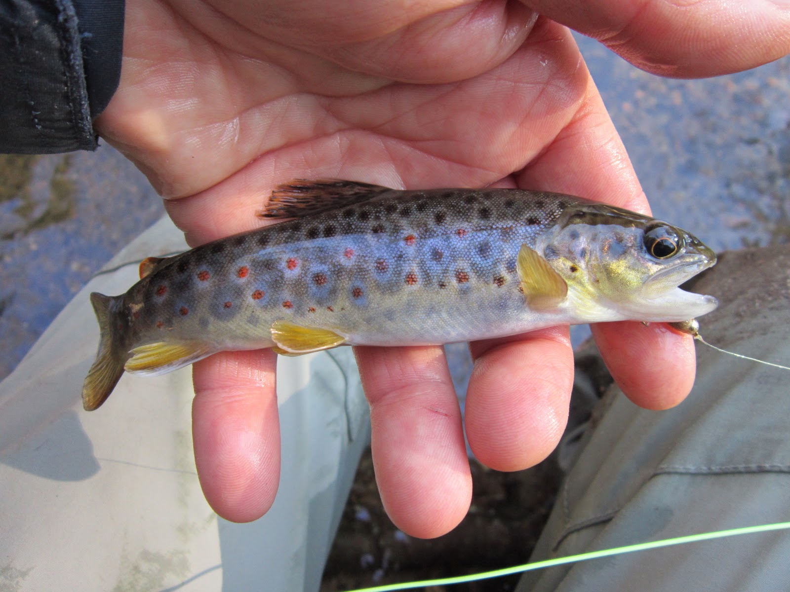 My second stop was a small brook, which is generally a pain in the neck to fish due to the small trees that run right up the edge. At least I was rewarded for fishing it one more time. A beautiful little brookie fell for the sparrow nymph. It was the only taker on this brook today. I can't complain.